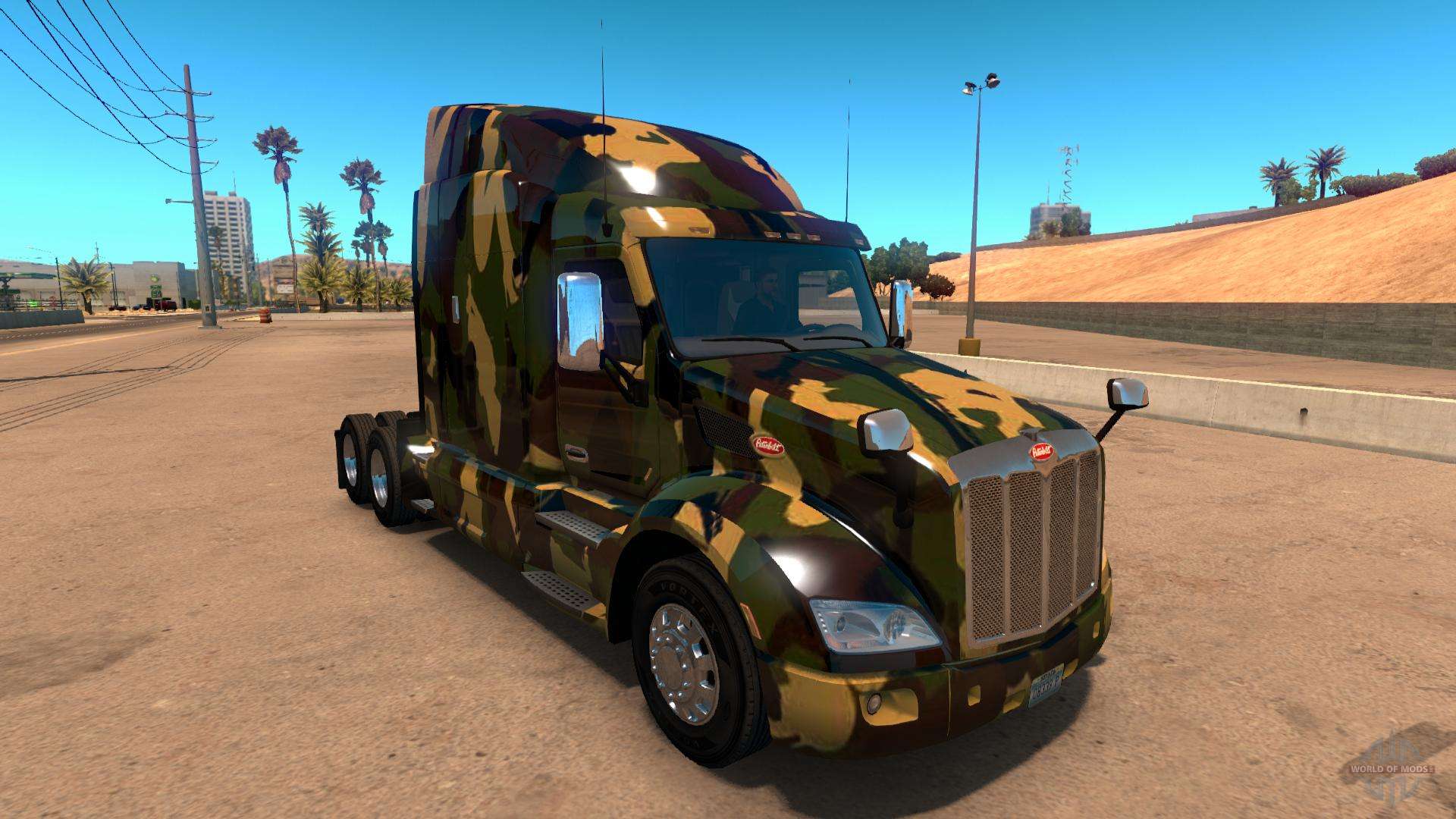 Скин "Камуфляж" для Peterbilt 579 добавляет в American Truck Simulator камуфляжный скин для тягача Peterbilt 579. Камуфляж этот не совсем обычный, как вы можете видеть на скриншотах.