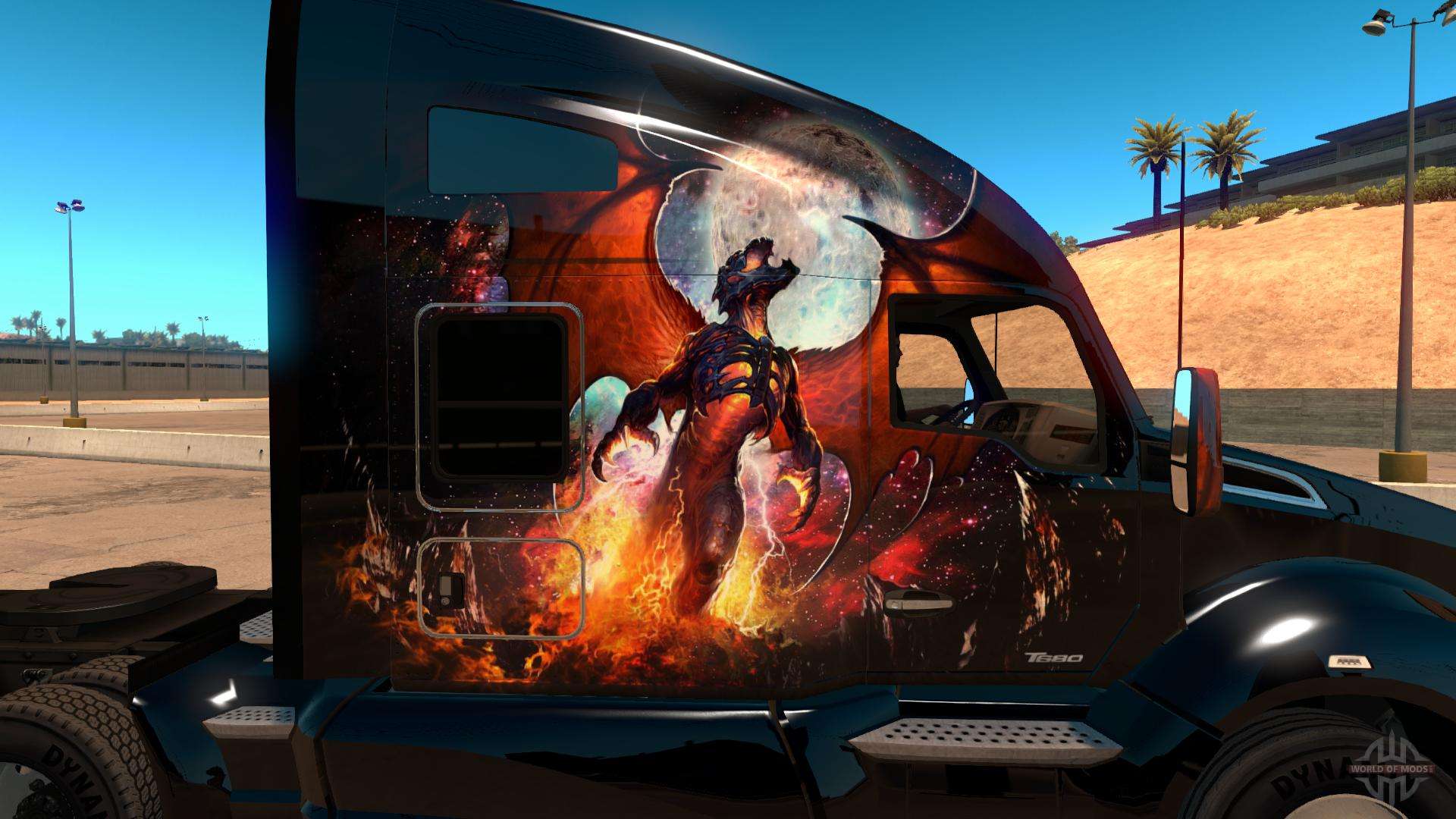 Мод Kenworth T680 Skin Phoenix для American Truck Simulator добавляет в игру новый скин для тягача Kenworth T680. Не смотря на название, мифическое существо, изображённое на скине, больше похоже на Deathwing из World of Warcraft, чем на феникса. Оставим это на совести автора.
