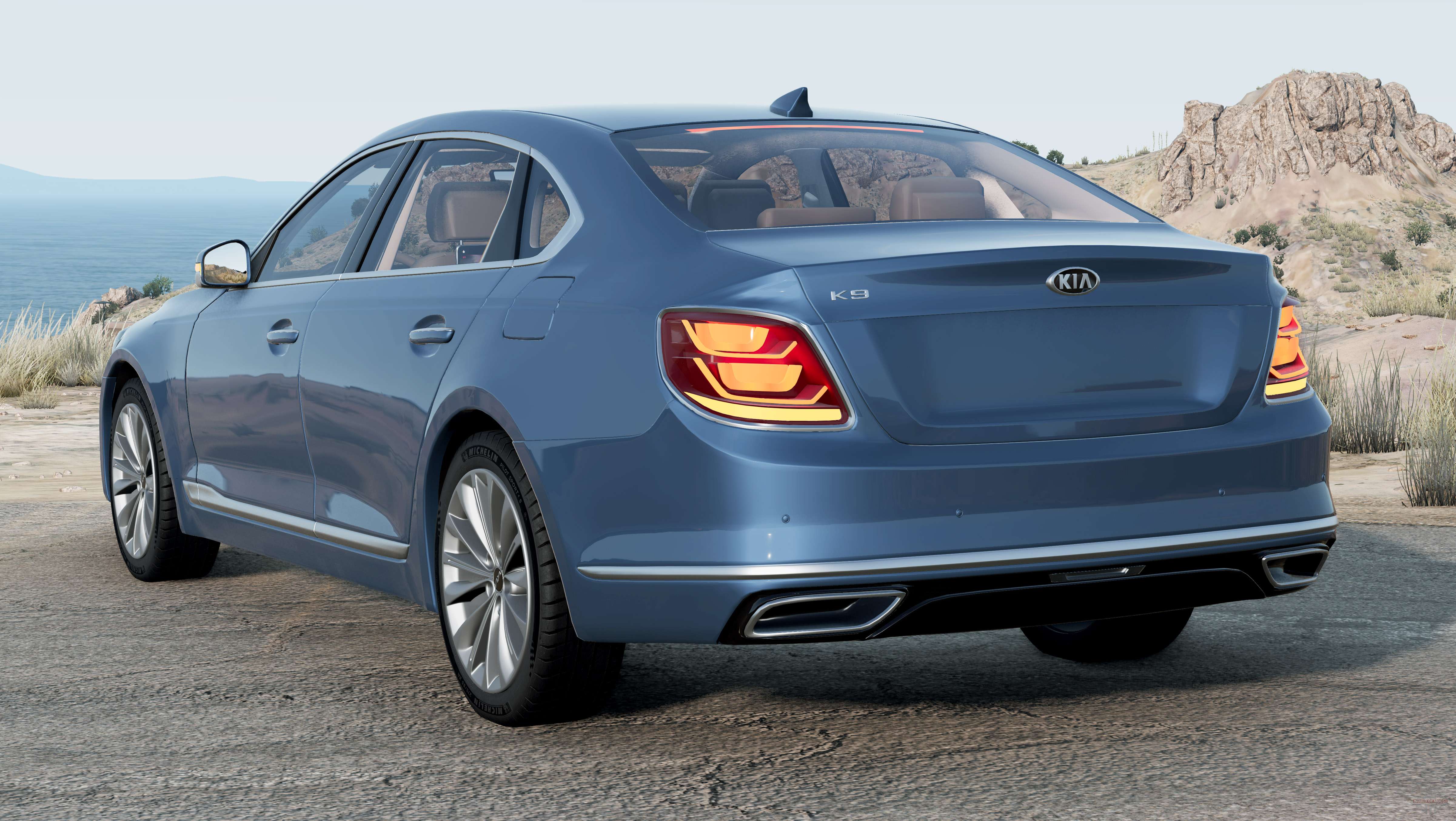 Kia K9 (RJ) 2019 для BeamNG.drive. Модификация добавляет модель корейского представительского автомобиля, сочетающего в себе комфорт и передовые технологии, обеспечивая плавное и спокойное вождение.