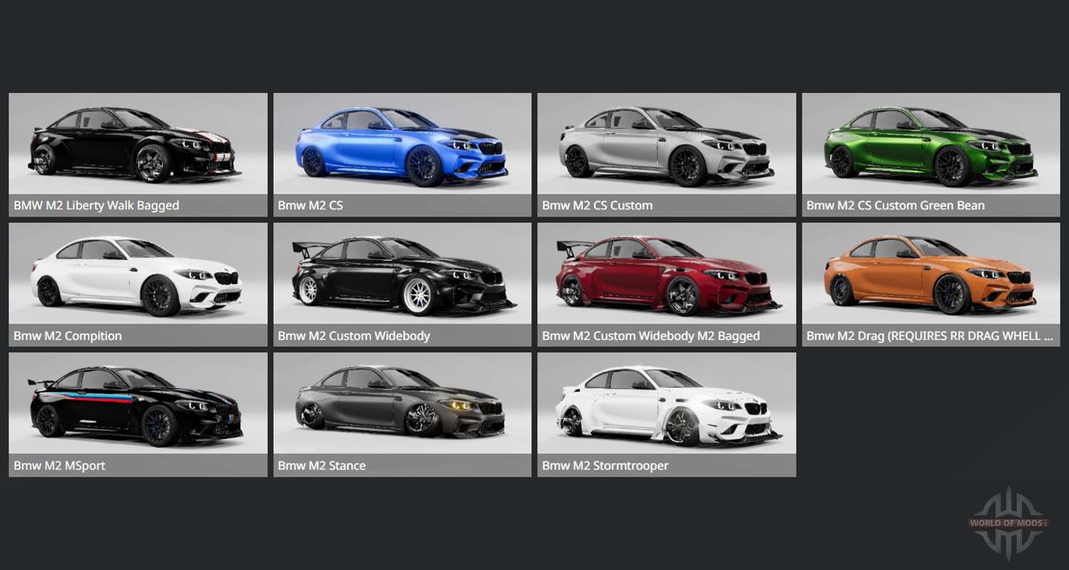 Скачать мод на BMW M2 CS (F87) 2020 для BeamNG.drive можно по ссылкам, расположенным ниже на странице.