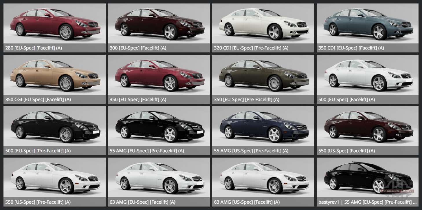 Mercedes-Benz CLS 63 AMG (C219) 2010 для BeamNG.drive. Модификация добавляет модель заднеприводного седана бизнес-класса с кузовом, стилизованным под купе. Его эффектный внешний вид, элегантные линии и харизма привлекают внимание даже на дороге.